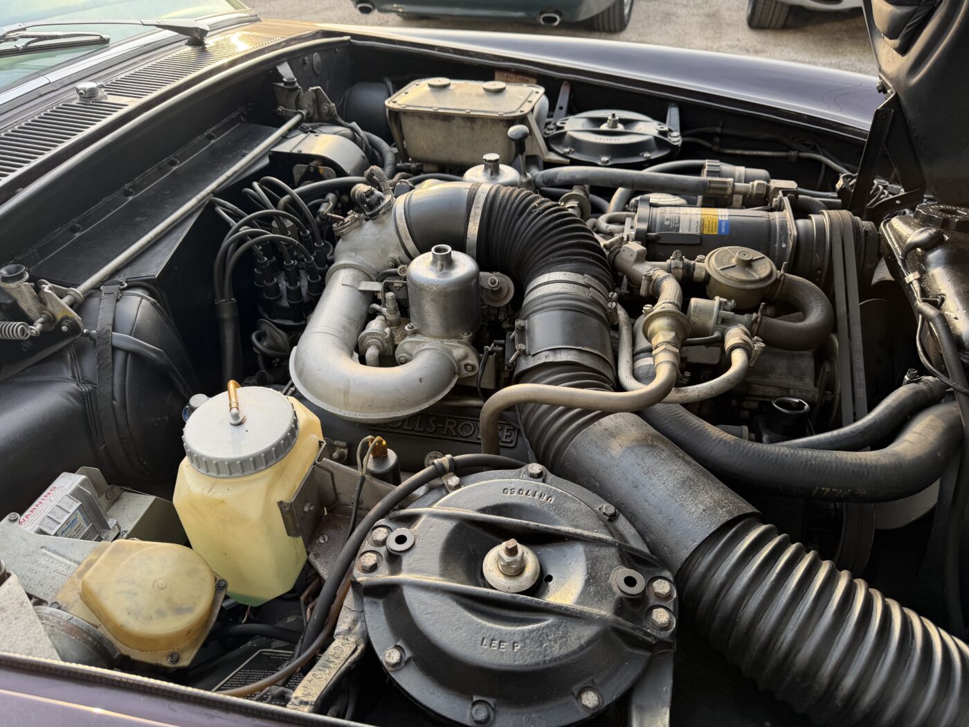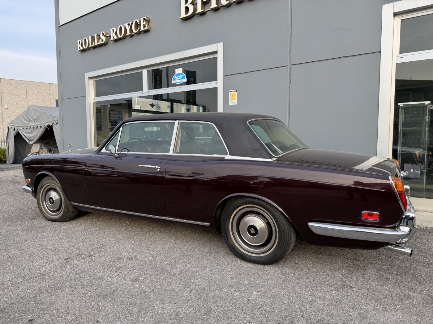 Splendida Rolls-Royce Corniche Coupé color Melanzana metallizzato con interni Neri.